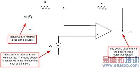 方程式 3.1:简单运算放大器电路的噪声增益