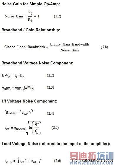 附录 3.5:简单运算放大器电路的电阻与总噪声计算方程式。