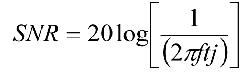 在该方程中,f是被采样的模拟频率,tj是时钟源上的RMS抖动(这证明SNR(信噪比)将随着时钟源上抖动的增加而恶化)。这个方程直接适用于采样耐奎斯特型转换器,Δ-∑ ADC—如ISL260001—受益于过采样,且抖动要求因过采样率(OSR)而稍微下降。
