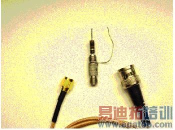 低成本构建这种探头的方式如图3所示。探头适配器是一个具有SMA插座对插座的适配器,其中,在一端焊接了轴向引线的电阻。如图所示,短的地引线也被焊接上了。地引线应该尽可能短,以最小化回路的电感。