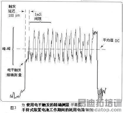 可测试手持式装置各种工作条件下的耗用电流—能类似示波器波形捕获的电平触发