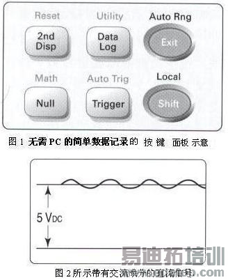 因怀疑空调机产生快速和宽范围的温度改变,故需测量计算机服务器机房的温度变化,但却在在午餐时间内。如何能立即开始测量,又不耽误预定的午餐时间呢?应拿起高性能数字万用表、探头和电源线,把它们带到计算机机房,定好传感器探头位置,选择温度测量功能和传感器类型,按Data Log键(见图1所示面扳),设置1小时测量其间隔为1秒;按Trigger键开始测量过程,然后仍可去午餐。等测量已经完成,读数都已保存在非易失存储器中,把数字万用表带回办公室,接上LAN,启动PC的浏览器把读数从浏览器剪切和粘贴到工程师的电子表格,交付打印的图表。不需要用计算机进行测量设置,高性能数字万用表体积小,携带方便,工程师不需要为收集数据编写或加载程序。
