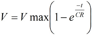 ADC的输入电路可以被建模为一个简单的RC电路,其中R代表信号的源阻抗,C代表ADC的采样电容。充电中的RC电路可以用下列等式表示:
