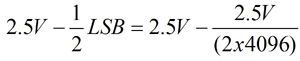 其中,Vmax是充电电压、V是电容两端的电压、采样电容为18pF、采样时间t等于390ns。ADC输入端必须处理的最坏电压变化是在一个输入通道被设为0V、相邻通道被设为2.5V的时候。此时输入电容必须在390ns内充电到2.5V,并满足1/2 LSB精度要求。
