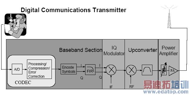 | Figure 1. 通用数字通信系统发射器的简单模块图 |