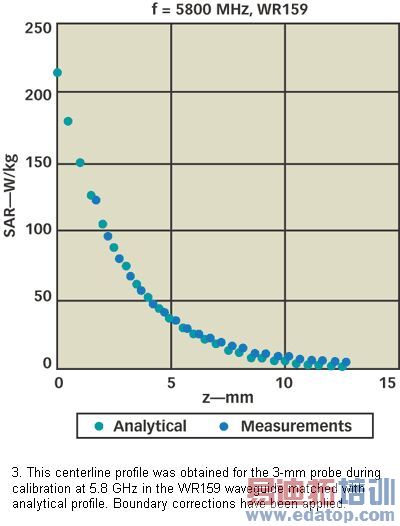 计算和测量在5.2和5.8GHz频率上进行,并对结果进行了比较。测量依赖于类似的使用匹配窗的波导中的SAR探针的校正,在这里,通过利用分析计算得到的结果,来与测量得到的E场轮廓相匹配,来对校正施加影响。对于5到6GHz频段内的微小穿透深度,很有必要通过波导的校正阶段推导出边界校正因子,并利用这些因子来校正因靠近表面而受影响的测量结果。