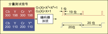 1110)序列来测试均衡器的动作。当扰频器获得所需的开始条件时,差不多对每个场进行一次这种测试,并且将一直持续下去,直到被EAV数据包终止。该序 列产生一个较高的直流分量,充分测试设备的模拟能力和处理信号的传输系统。SDI校验场信号的另一部分设计用来检查锁相环性能,它使用了一个由20个0加 上20个1组成的特殊信号,这为时钟提取提供了最少的过零次数。