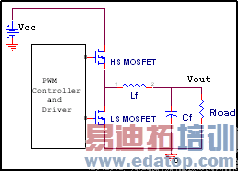 同步升压转换器是个人电脑行业为DC-DC转换器所选择的拓扑结构,并且被广泛地用于电信其它市场。我们在本文中将仅仅考虑这种拓扑,但是同一方法也可能适用于其它的拓扑。我们将尝试根据两个因素推导计算最优化MOSFET裸片面积的方程。