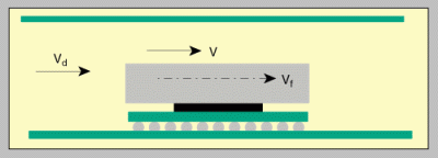 |  | | 图1:带散热器的倒装器件的传热。I> | 散热器在工业领域使用得非常普遍。随着处理速度的提高和封装体积的不断缩小,散热器的热性能和选择所面临的挑战越来越艰巨。本文将介绍一款简单又精确的分析工具,工程师可以利用该工具检查影响散热器热性能的各个参数,从而帮助他们选择到合适的散热器。 散热器在工业领域使用得非常普遍。随着处理速度的提高和封装体积的不断缩小,散热器的热性能和选择所面临的挑战越来越艰巨。特别是在无管道空气流通的系统中,当散热器被放置于PCB上后,散热器的热传送能力就使散热器本身置于热量散发和空气流动这种独特的条件下。  | | 图2:对通过平直散热片散热的空气流动应用计算型 流体动力学仿真。散热片区域中过早的空气流通出口 反而会影响热性能。 | 虽然散热器从结构上看非常简单,但在散热片区间内的空气流通以及散热片和周围环境之间的热量耦合已经成为一个相当复杂的问题。在实际选择散热器时人们常常只考虑整个器件的功耗,从不做详细的热分析。比如,工程师可能会通过上网或联系供应商寻找一个冷却15W器件用的散热器。但为给定应用找到有效的散热解决方案并不是想象中这样简单,应该充分考虑应用的具体特性。 本文将介绍一款简单又精确的分析工具,工程师可以利用该工具检查影响散热器热性能的各个参数,从而帮助他们选择到合适的散热器。 常听人问“散热器能散发多少热量?”,在开发能够回答这个问题的模型前,我们需要明确这个问题的实质。答案是,散发的最大热量取决于使用散热器后试图获得的器件表面温度。另外,由于器件的壳温也比较含糊,因此应该把器件的结温Tj作为主要考虑对象。明确结温后上述问题就容易回答了。 一体化模型 以平时常见的上面装有散热器的倒装BGA芯片为例,如图1所示。 采用在电子热管理中使用的标准封装电阻的定义:  | | 图3:区域性流通指示。 | Rja-结点到环境的热阻 Rjb-结点到板的热阻 Rjc-结点到外壳的热阻 Rcs-外壳到散热器的热阻 Rsa-散热器到环境的热阻 Rsp-扩散热阻 定义散热器热阻的等式如下所示,  | | I> | 其中, Afin等于散热片面积+散热片间的基本面积;Cp为定压比热;h为传热系数;m为总体流速;等于 VfΔ; Vf为散热片区间内的流速; 为散热片效率; 为流动密度;Δ为贯穿横截面的散热片通道。  | | 图4:结温是流速的函数。 | 传热系数(h)和Vf确定后再确定Rsa。传热系数可以根据等式2得到:  | | I> | 其中,  | | 图5:结温是高度的函数。I> | Nu=2hs/k, L*=L/2DHReD DH-水力直径 k-流动导热性系数 ReD-雷诺数,等于(VfDH/μ s-散热片到散热片距离 下一步运算将得到Vf。然而我们必须意识到,计算通过开放通道(上面和侧面通过)中散热片区间的空气流动是相当复杂的,因为这里的空气流动呈高度三维的状态。散热片区间中过早的出口导致分析预测非常困难。图2作了演示,其中通过(传统的)平直散热片散热的空气流动CFD仿真明确地表明了流动的三维结构,并形象地示出了空气如何从开放通道系统(如典型的大多数应用)中的散热片流出去。 这里已经考虑了流动旁路V和通过散热片区间的空气流通Vf,如图3所示。 将能量守恒定律应用于散热器,  | | 图6:结温是长度的函数。 | 应用连续等式,并假定由散热片建立的通道中空气呈Poiseuille流动,那么就有下面的等式: 和 其中, Ad-管道横截面积 Af-散热片之间的通道截面积 S-散热片到散热片距离 L-空气流动方向的散热片长度 ΔPHS-散热压力下降 V-旁路流速 Vd-管道(接近流)流速 Vf-散热片之间的空气流速  |  | | 图7:结温是流速和热导系数的函数。 | 图8:结温是的Rjb函数。 | 在给定Vd时,联解方程3、4、5可以得到Vf。如前所述,结温是考虑器件热完整性的真正标准,因此应该使用结点到环境的热阻Rja获得Tj表达式,它是许多参数的函数。  | | I> | 其中,Ta是器件/散热器的接近空气温度。扩散热阻值(Rsp)可以从[2]得到,Rsp来自于源和散热器之间的不同接触区域。这是散热器面积大于器件时的情况,如图1所示。或者如果散热器与源的面积相同,而热量没有均匀散发,此时得到的值将比正常热阻值大很多(源与散热器相同面积)而无法忽略不计。 等式6和等式1-5为我们提供了一个回答散热器能散多少热的通用工具,但我们仍要关注其它参数对Tj或Rsa的影响。这些参数包括散热器的高度、长度和基底面积、散热器材料、Rjb和Rjc、散热片数量以及从散热器散发的总热量。 结温是各种几何参数的函数 评估这些参数对无管道流通的散热器热性能影响的参数化研究工作目前正在进行中。图4到图12使用的不同参数值见表1所示。  |  | | 图9:结温是的Rjc函数。 | 表1:被测案例所用参数的不同值。(点击放大该图) | 下图4表明结温是风速的函数。从该图可以看出,在达到某一速度后(本例中约3米/秒),风速的提高已经不能有效地提高散热器性能。这要归因于传热系数水平和通过散热器的压力下降的增加,因此也表示模型的预测值与期望值有了较好的对应。 图5表示结温是散热片高度的函数。达到某一高度后散热片效率就会降低,从而减少通过增加散热片高度获得的热性能效率。在本例中将散热器高度从60mm增加到90mm对结温的改善只有1.5摄氏度。  | | 图10:结温是散热片数量的函数。 | 图6表示结温是散热片长度的函数。长度在150mm后结温开始上升。在达