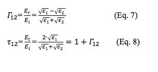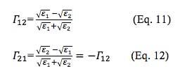 由于方程式7,介质1到介质2以及介质2到介质1的入射波反射系数如方程式11和12所示。