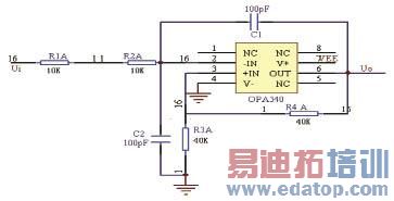 放大器由两级串联,前级是两个同项放大器,为对称结构,输入信号加在A1、A2的同项输入端,从而具有高抑制共模干扰的能力和高输入阻抗。后级是差动放大器,它不仅切断共模干扰的传输,还将双端输入方式变换成单端输出的方式,适应对地负载的需要。