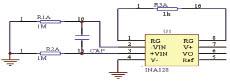 INA128的基本连接中用一个独立的外部电阻RG可以获得的放大倍数为:G=1+50kΩ/RG.