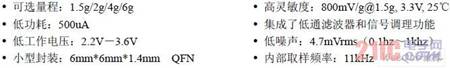 2.2 三轴MEMS 加速度计: 本系统中的加速度计选用了 Freescale 的MMA7260Q 单片三轴加速度计。MMA7260Q 是一个低成本的电容式微机械加速度计,其内部具有信号调整、单极低通滤波器、温度补偿 等功能,其量程可以通过编程选择1.5g/2g/4g/6g 之一。其主要特点如下: