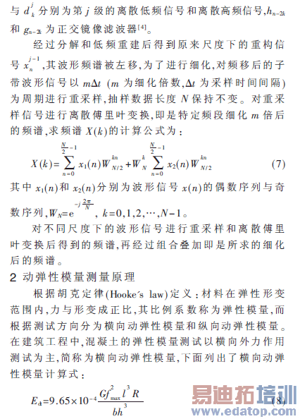 通过Mallat算法的多分辨率分析方法,保证了测试系统在20 kHz量程内相对误差小于0.3%,重复性误差小于0.5%,满足了建筑工程设计中混凝土动弹性模量测量的精度需求。在利用Mallat算法研究声信号频谱的基础上,可通过超声波定位精度高、穿透能力强等特点来进行混凝土结构件的探伤定位等无损检测研究。