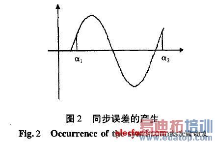 △T=N×Ts-T 如图2,设测试系统的第1个采样点在基频的α1点。,第N个采样点在α点,由于同步误差△T的存在,α1≠α2,这时实际采样间隔为: