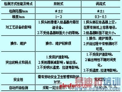 两种结晶器液位检测的综合分析比较如附表所示。
