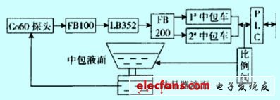 物质吸收系数μ取决于所用的放射源(co-60或cs-137)和测量区域内熔钢的重量ρ×d。由于结晶器壁及背板的厚度已知,钢水的特定重量实际上并不改变,所以检测的效果就不会改变,痪浠八担结晶器壁及背板的厚度不会对检测精度有任何影响,而只会使射线活度造稳定的衰减,而它可通过提高放射源的活度来进行补偿。测量系统结构如图1 所示。