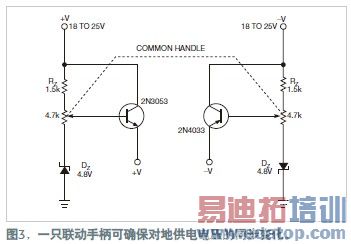 了解这点以后,就能轻松地选择出晶体管的基极。至于集电极与射极的区别,必须了解其特性,即在反偏时,基-射结的击穿要比基-集电极结更容易,后者在正常工作情况下是反偏的。