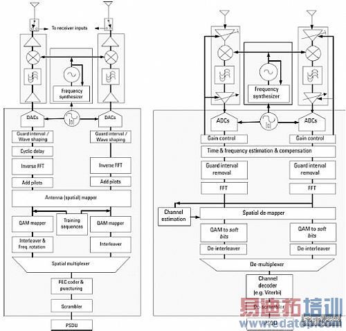 图7:2*2 MIMO 发射器和接收器的方块图。