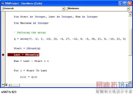 E5071C的VBA环境提供帮助确定逻辑差错的多种调试工具。VBA在线帮助和有关VBA的书籍中有使用调试工具的详细信息。