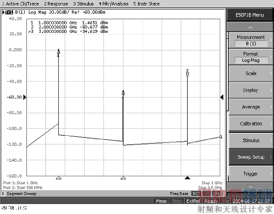 如果使用网络分析仪作为调谐接收机(如频谱分析仪),则频率点(生成谐波处)和测量点处的设置必须相同。频谱分析仪可以检测到驻留在扫描频率范围内的所有信号,而网络分析仪仅能检测到驻留在测量频率点的信号。