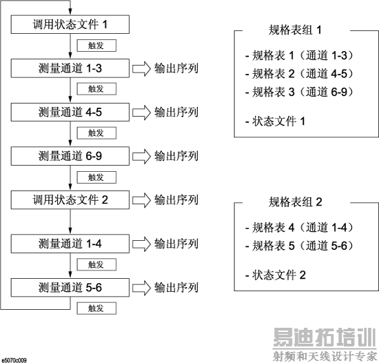 如果规格表 4 和 5 处于关闭状态,则不需要移动到组 2,并且可以在不调用状态文件 2 的情况下开始测量规格表 1。此流程与前面描述的测量单个组的流程相同。