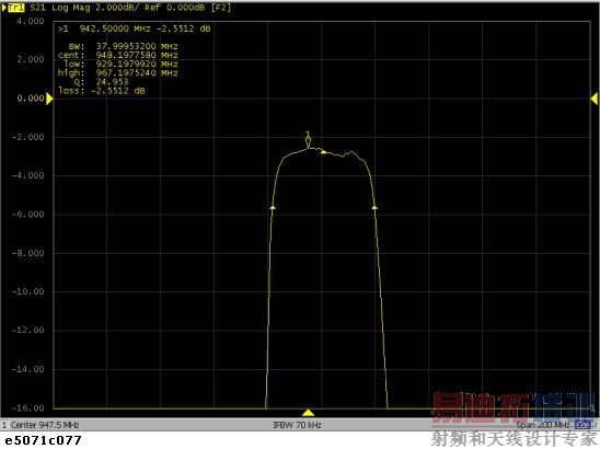将工作标记放置到执行带宽搜索的迹线上的所需点处。此工作标记本身的响应值为带宽搜索中的插入损耗(“loss”(损耗))。