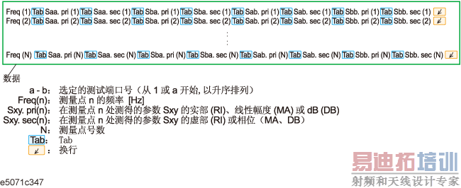 下图示出了以 Touchstone 格式保存的文件的数据结构。