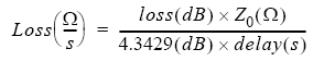 损耗用于确定沿同轴电缆的长度(单向)由集肤效应引起的能量损耗。损耗是用 1 GHz 上的 Ω/s 为单位进行定义。在许多应用中,使用 0 值作为损耗不应带来显著误差。通过测量延迟(秒)和 1 GHz 上的损耗,然后将测量值代入下面的公式,即可确定标准的损耗。