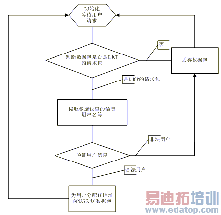 解析收到的数据包。该模块处理收到的数据包,首选检查是否为Discover包,如果是就按DHCP协议取出用户名。