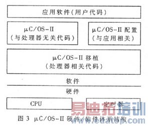 uC/OS-II是自由软件,非商业的运用如科研、教学都是免费的。任何使用者都可以从互联网上下载其源代码,通过适当的修改加以移植,使其满足自己硬件和系统的需要。为了移植,需要先了解uC/OS-II操作系统的总体结构,图3所示是uC/OS-II的结构及与硬件的关系。