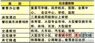 ◆从建筑物的性质考虑:大型公共场所、重要办公楼优先。