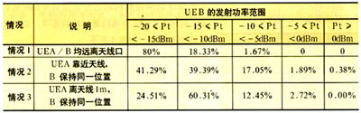 为了验证MCL对天线口功率要求,用UEA/B2个终端在某地进行了MCL试验。表5所示的情况1~3中,逐渐降低MCL(UEA逐渐靠近天线)。