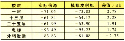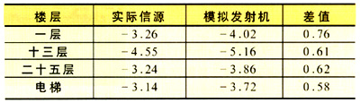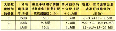 在室内分布系统方案设计中,考虑到室内环境的特殊性(如隔墙损耗)、减少信号外泄、降低室外信号对室内的影响三方面因素,也为了保证系统均匀、有效覆盖,可根据模拟测试结果,采用多天线小功率原则,合理布放天线,保证室内分布效果。具体如表2、表3所示。