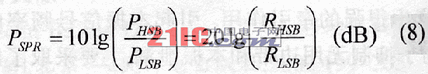DQUC的边带抑制能力通常用边带功率抑制比(PSPR)来定量表示,也就是杨要的边带信号功率和需要抑制的无用边带信号功率的比值,即