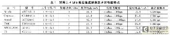 目前在2.4 GHz频段的集成射频芯片有多种,性能各有差异,表1列出了几种常用芯片的性能特点。