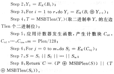 格式化函数F将N,A,P整合在一起,并分组为r个数据块。对数据块加密,得到MAC值T,加密计数器发生函数产生的计数块,加密所得sj和P与T异或得到密文C。解密过程则相反。