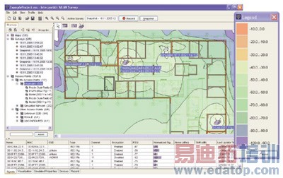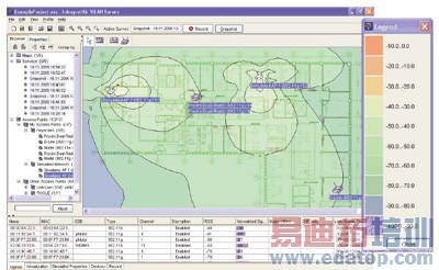 在用户勘察过程中,覆盖范围或数据速率直观显示图可以实时更新。一个项目文件中可能有几个勘察。在较大的场所中,沿场地一周可能需要几个小时,测量人员需要偶尔休息一下。存储来自多个勘察的数据,使您可以比较不同时间的勘察结果;每隔一个月或三个月,网络管理员应当重新勘察站点,以立即直观显示覆盖范围的差异,定位不良的和非法的接入点。