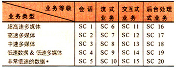 依照ITU-R M.[IMT.MARKET]的建议,业务类别主要的参数为: