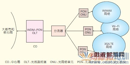 图1 WDM-PON 和无线网络融合的系统架构
