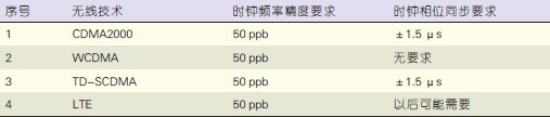 表1 不同无线技术下的时钟同步要求