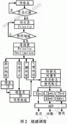 数据链路层在实现无线HART网络全网时钟同步的基础上,主要负责链路的调度,控制着数据的发送和接收,从而保证网络的正常通信。链路调度通过查询 活动超帧表、链接表、数据等表从而决定下一个将要通信的时隙。所有的接收链接将会被允许通信。网络层发出发送数据请求,若待定表中已无空余空间,调用失 败,否则数据包进入待定表中的同时查询等待表是否存在相同目的地址的高优先级数据包,若不存在,数据包进入等待表中等待发送,否则保存在待定表中,待发送 表根据目的地址的类型进行查询,邻居地址查询邻居表、图地址查询图表的基础上再查询邻居表,最终邻居地址、图地址、广播地址、代理地址的4种都将查询链路 表获得相应链路并设置为发送类型(TX=1),之后进入等待状态。