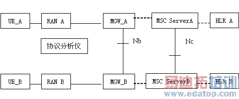 IOT测试中,要求各厂家提供一套MSCServer和MGW,进行厂家间Nc、Nb接口的互通测试。测试结构如图5所示。