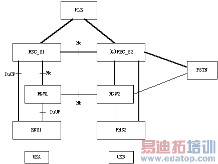 图3结构2-—两个MGW分别与不同的MSCServer连接
