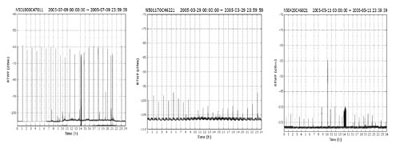在使用射频直放站时,在下行方向施主天线接收无线信号经直放站放大后由业务天线转发;在上行方向,业务天线接收无线信号经直放站放大后由施主天线转发。直放站施主天线和业务天线间的耦合损耗称为天线隔离度。如果直放站增益大于天线隔离度,那么在施主天线->直放站->业务天线->施主天线间形成正反馈回路,信号被不断放大,造成自激,导致直放站无法正常工作。直放站如果产生自激,有可能影响周围一片小区的RTWP。图6是华为公司在某商用网络中由于直放站自激造成周围三个基站小区RTWP同时异常图。