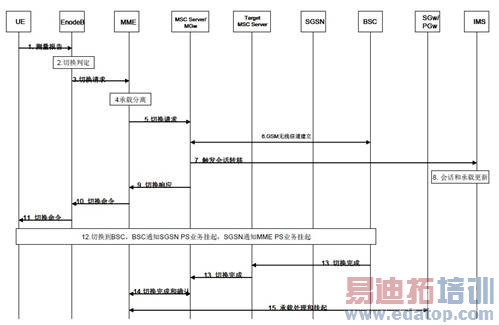 LTE 向GSM 网络漫游,且不进行DTM(Dual Transfer Mode)的SRVCC 简要切换流程如下。