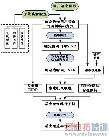 同时,在预规划功能中,LTE云平台支持多种规划准则,全面评估各种传播环境,支持空间信道模型及射线追踪建模,并引入了覆盖与容量进行迭代估算的过程。该迭代思想主要基于以下原理:业务负荷表示业务资源的占用率,与系统的用户容量、话务模型和业务模型有直接的关系,而用户容量则与覆盖区域的面积或小区覆盖半径有直接的关系。在区域用户密度一定的情况下,小区覆盖半径越大,覆盖范围内用户容量越大,从而系统负荷相对越大;反之小区覆盖半径越小,则覆盖范围内用户容量越小,系统负荷也相对越小。因此由用户容量确定的系统负荷,又反过来影响链路预算的小区覆盖半径,即系统负荷越大,则系统干扰越大,将导致链路预算的覆盖半径越小;而系统负荷越小,则系统干扰越小,将导致链路预算的覆盖半径越大。如图3所示,LTE动态云规划充分考虑控制信道与业务信道的相互影响,基于容量准确评估系统负荷,实现自适应优化控制信道配置与用户容量进行迭代估算,进一步准确衡量规划区域负荷水平。`