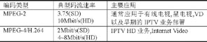 表2 典型MPEG-2 和MPEG-4码流速率与应用
