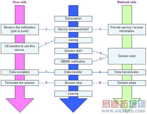 由于目前移动网络不支持组播和广播能力,3GPP定义一系列MBMS业务流程,增加了Iu接口以及Uu接口处的信令交互过程,在已有接口上定义了与MBMS业务相关的新消息和新参数。