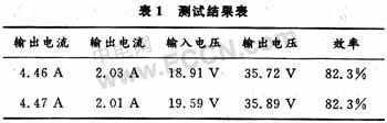 在选定开关元件之后,效率主要受开关频率的影响、储能电感的内阻以及线路中其他器件损耗影响,因此在器件选取上要注重其损耗的高低。对此系统的进行综合测试,结果如表1所示。